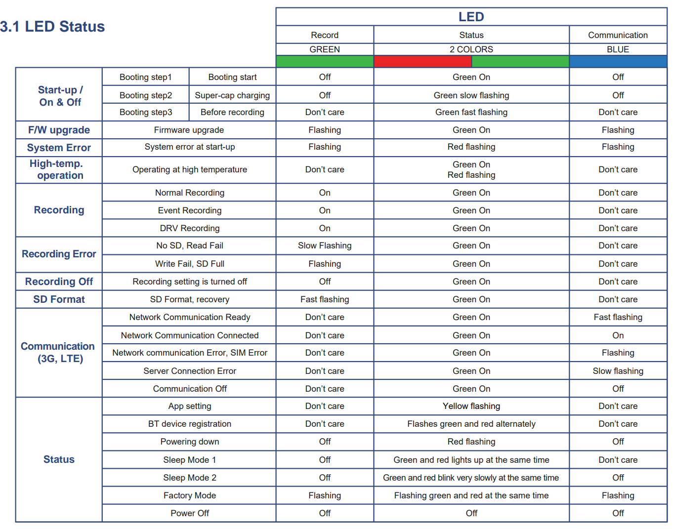 The MVT-9 system is equipped with three status LEDs above the record button.
