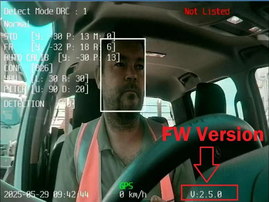 Screen shot from the camera live view showing the FW/version